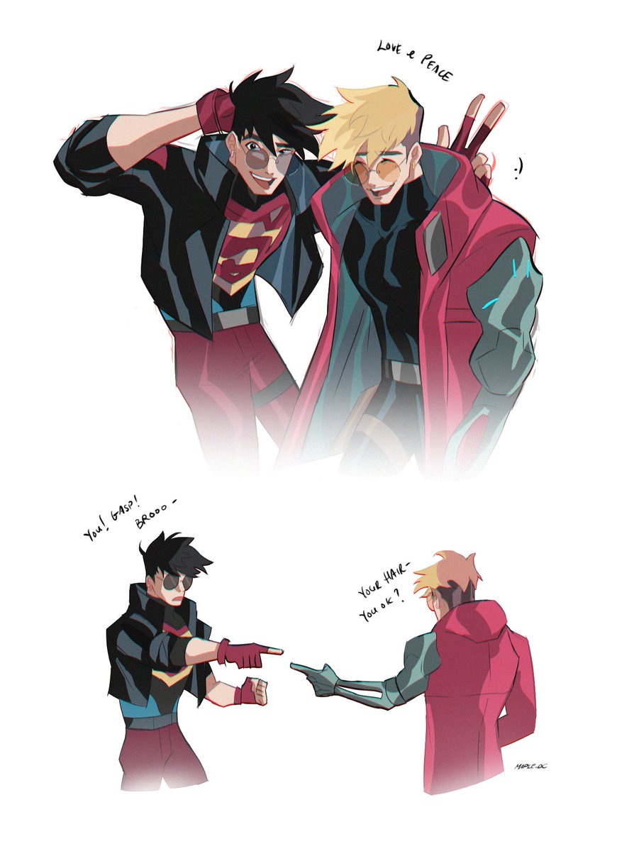 (Dc) Saw this tweet and immediately thought of kon dragging Clark to do this Also reposting to add a change #superboy #superman #clarkkent #konel twitter.com/lesbobomb/stat…