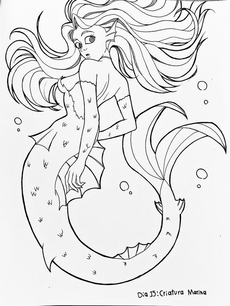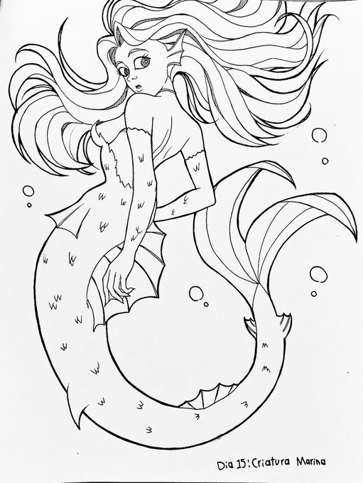 Día 15: Criatura Marina 🧜♀️ Mitad del mes lesss goooooo Ahora si perdón por ponerla hasta ahora #drawtober2021 #superlucidrawtober2021 #inktober2021 #inktober2021day15