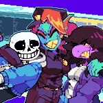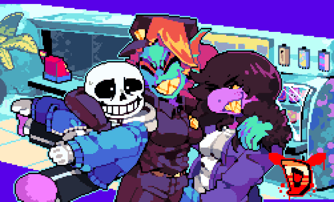 You heard of the KFC gang, now get ready for: sans. UNDYNE! ! ! Susie~ (Newgrounds post: newgrounds.com/art/view/ditch…) #DELTARUNE #undertale | #sans #undyne #susie | #pixelart #pixelartist | #ドット絵~