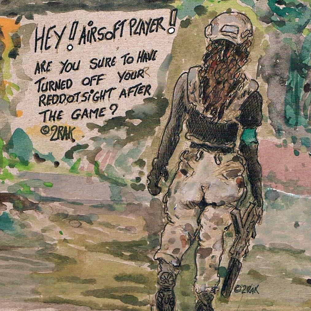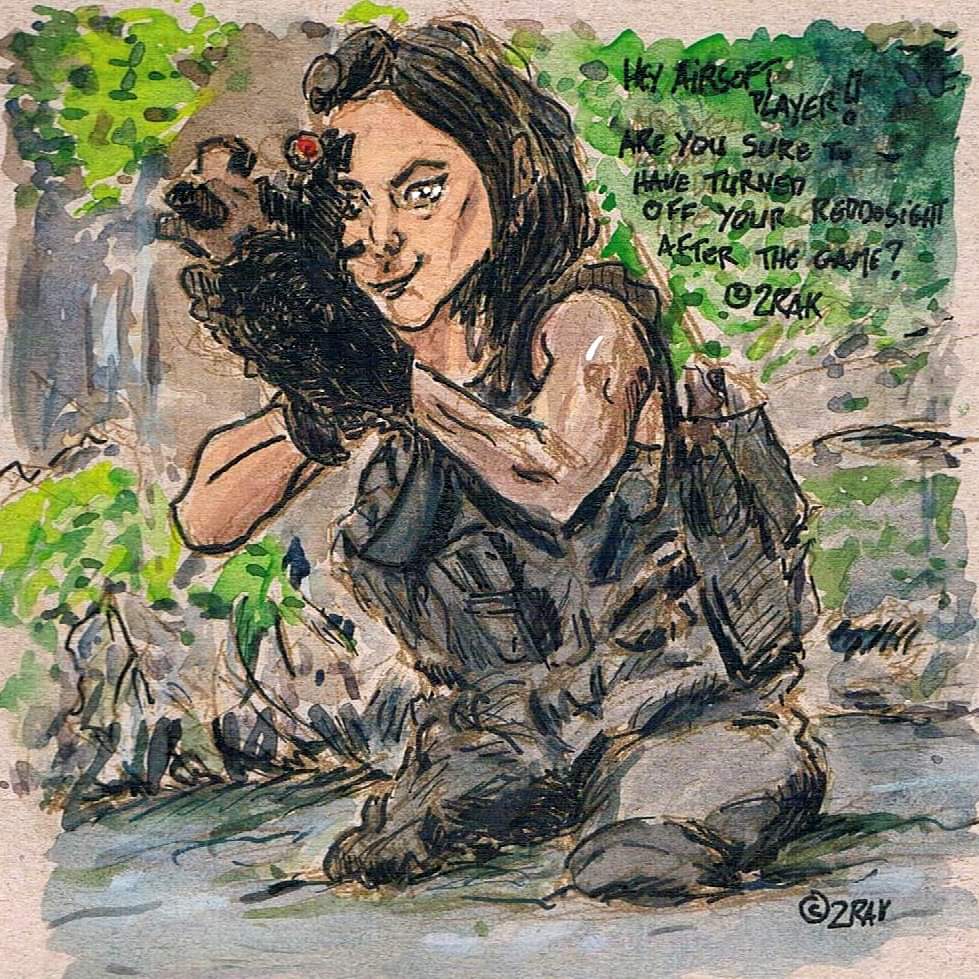 It's sunday, it's the reminder for the #airsoftplayer #drawing #inked #watercolor #pewpew #pewpewlife #tacticalgirl #airsoftgirl #cosplay #tacticute #airsoft #airsoftshop #airsoftworld #tactical #paint #reddot