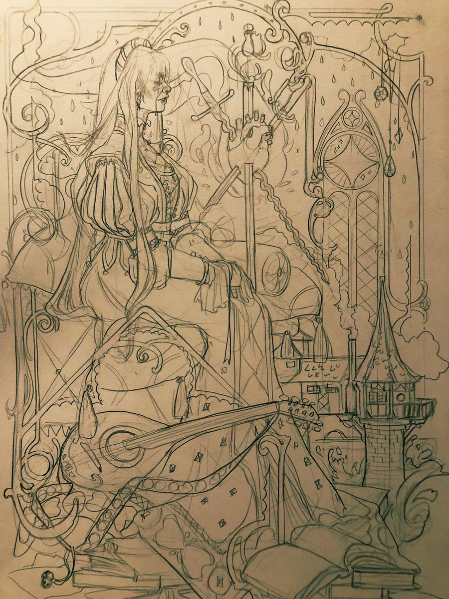 Finally done my part of collaboration ! Parasoul as a tarot card #Skullgirls #SkullgirlsMobile #parasoul #ArtistOnTwitter #artwork #artworkuser #artnouveau #tarotcards