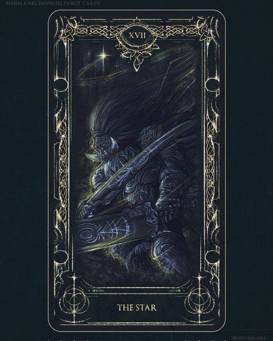 XVII. The Star 𝐄𝐥𝐝𝐞𝐧 𝐑𝐢𝐧𝐠 Tarot. "Starscourge Radahn" #Soulsborne #radahn #digitalarts #illustrationart #tarotcards #eldenring #eldenringart