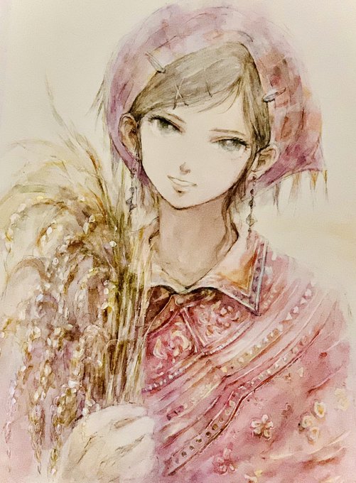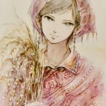 Thanksgiving 迷いが溢れてこないうちに いちおー コレにて 了。 制作過程も 沢山見て下さり、ありがとうございました。 ベトナム花モン族の伝統衣装、、、色とりどりの刺繍リボンは棚田を表現しているそうです。 #透明水彩 #thanksgiving #花モン族