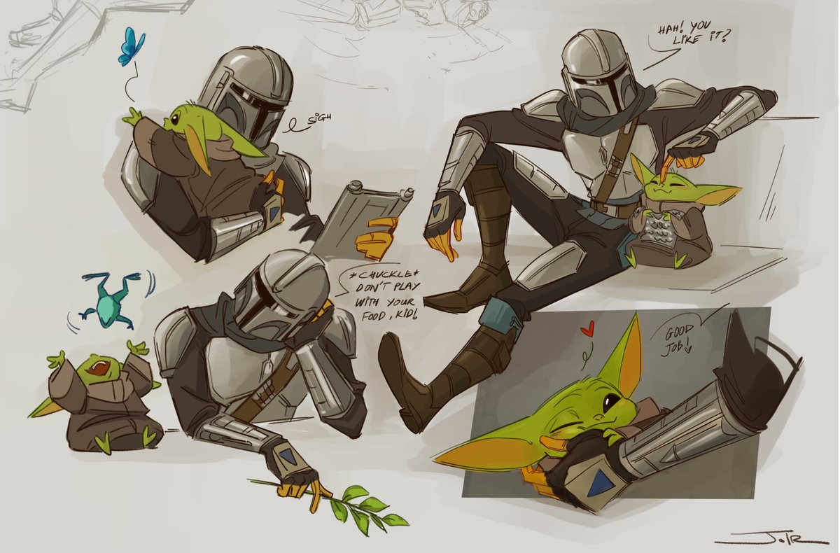 Another weekend sketch. Started doing Boba riding the Rancor but then got sleepy. #TheBookOfBobaFett #StarWarsFanArt #grogu Sketch in @Procreate