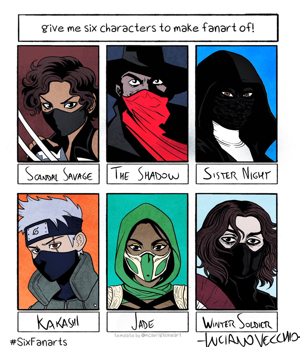 #SixFanarts Barbijo Edition / Facemask Edition #ScandalSavage #TheShadow #SisterNight #KakashiHatake #Jade #WinterSoldier