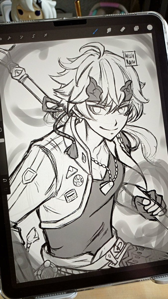 🔥 Nuevo dibujito 🔥 Esta vez tocaba salir de la zona de confort. Espero que os guste ❤ #Thoma #GenshinImpact #fanart