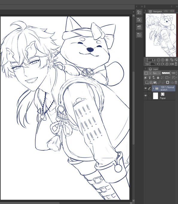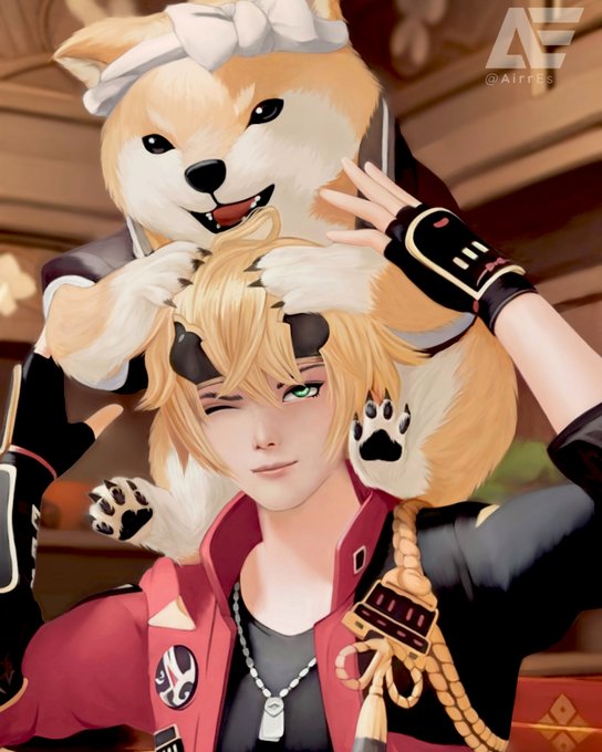 facing my biggest fear, drawing men & furry he's with taroumaru waiting for ayato #thoma #thomagenshinimpact #taroumarugenshinimpact #thomagenshin #taroumaru #genshinimpact #genshinimpactfanart #genshin #digitalillustration #adobephotoshop #fanart #digitalpainting #digitaldrawing