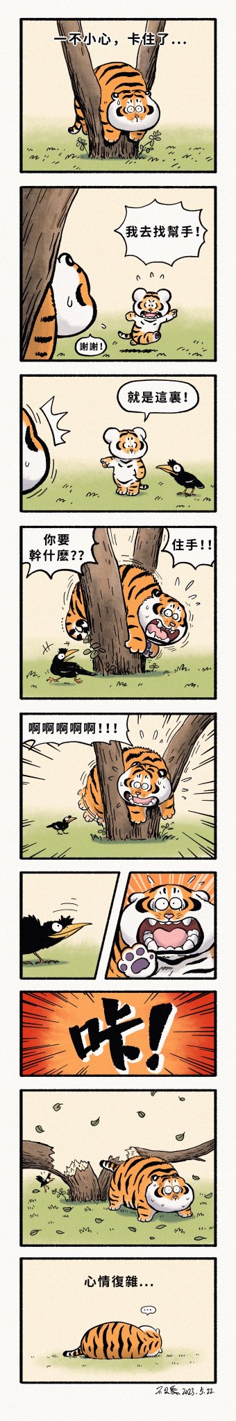 I'm stuck... 詰まってしまいました… P1. Oops, got stuck here… P2. I'll go find some help! P3. Right here! P4. What are you doing? Stop it!! P5. Ahhh!!!! P9. Feeling complex… #tiger #tigerart #9gag #catmemes #illustration #digitalart #procreate #cute #bu2ma #comic