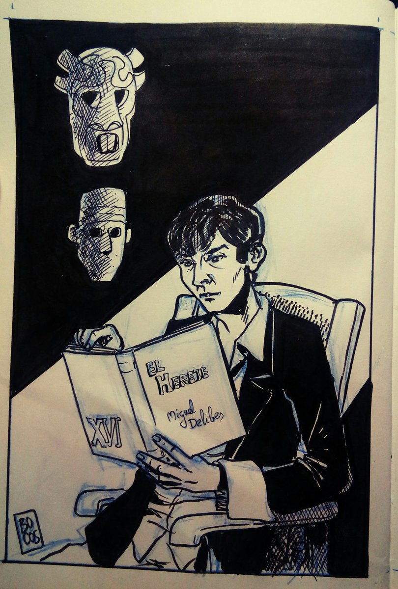 Tintubre Día 16. Libro - Book #dylandog #terror #giallo #tintubre #tintubre2020 #inktober #inktober2020 #ink #tinta #micronpen #tombowfudenosuke #pentelbrushpen #instadrawing #instadraw