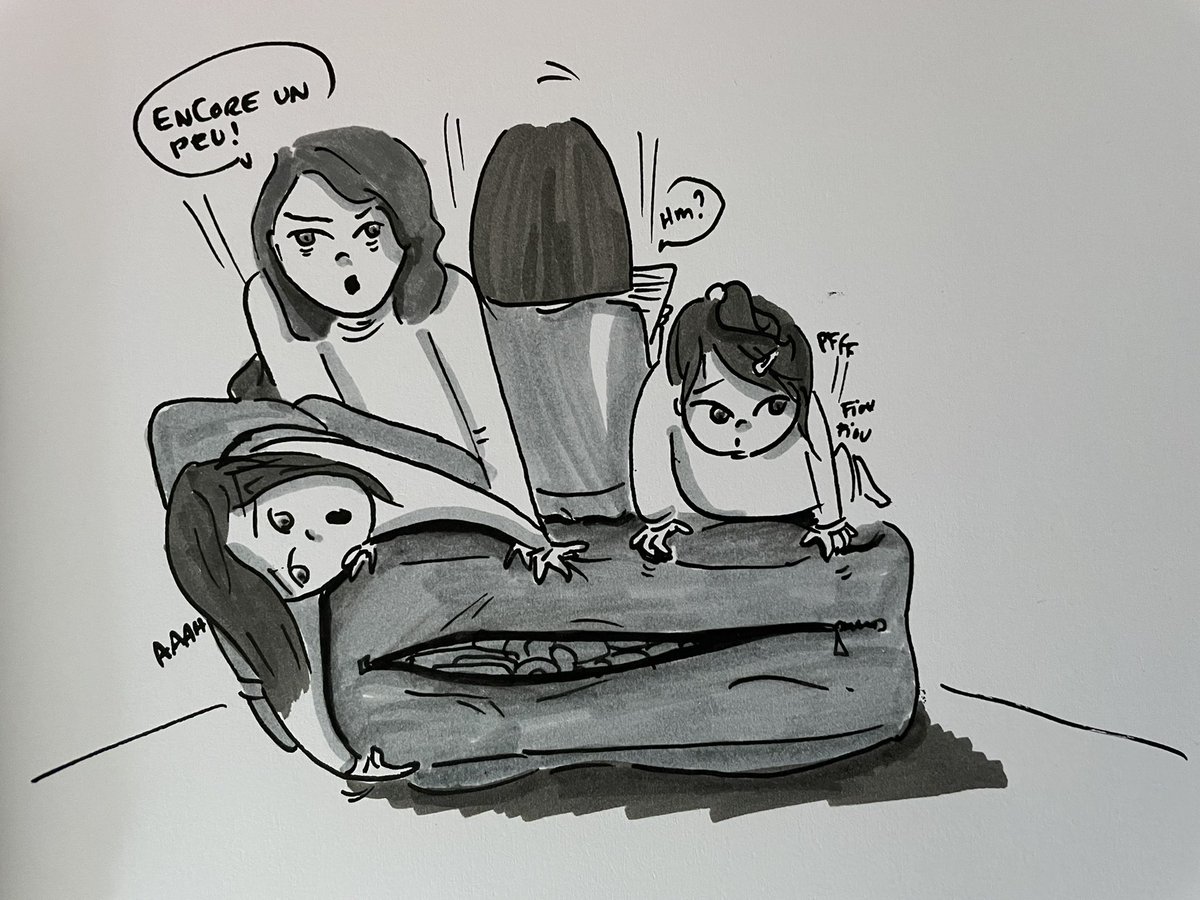 Thème Open ! Toute ressemblance avec une mère de famille et ses terribles filles préparant le départ en vacances de demain est purement fortuite. #inktober2021 #inktober #valise #vacances #open #luzcargot