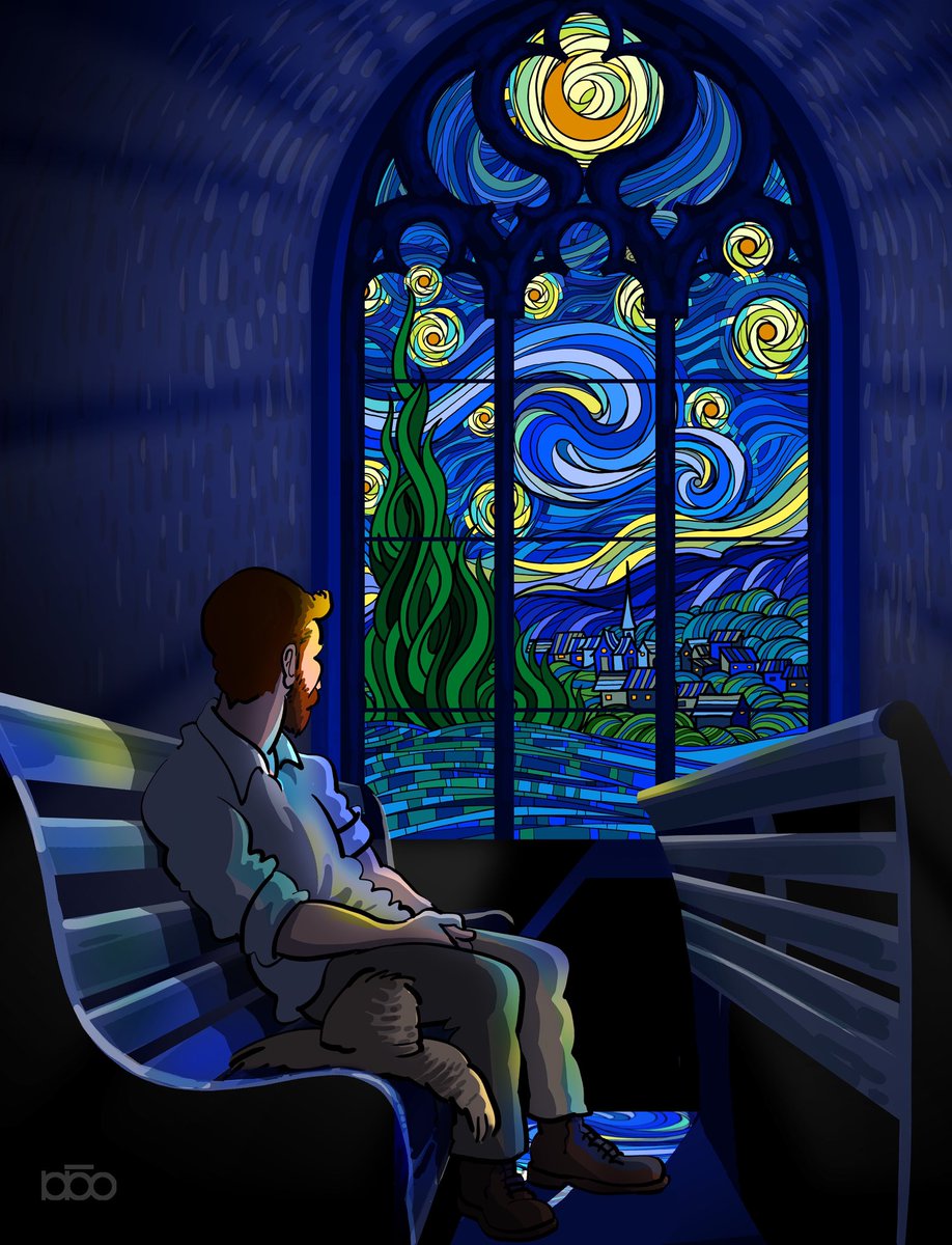 Yaguchi Yatora fanart! The background is inspired on Starry Night by Vincent Van Gogh, my favourite painter and my favourite painting!! Thank you @HachiCosart for the amazing idea for the background! #ブルーピリオド #blueperiod #yaguchi #yatorayaguchi #starrynight #vangogh