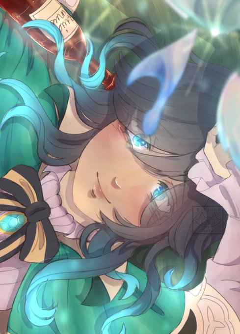 Drinks and story tales with a beloved makes it all sweeter to indulge 🍃✨ #venlumi #Genshinlmpact #fanart #venti #ventifanart #lumine #luminefanart