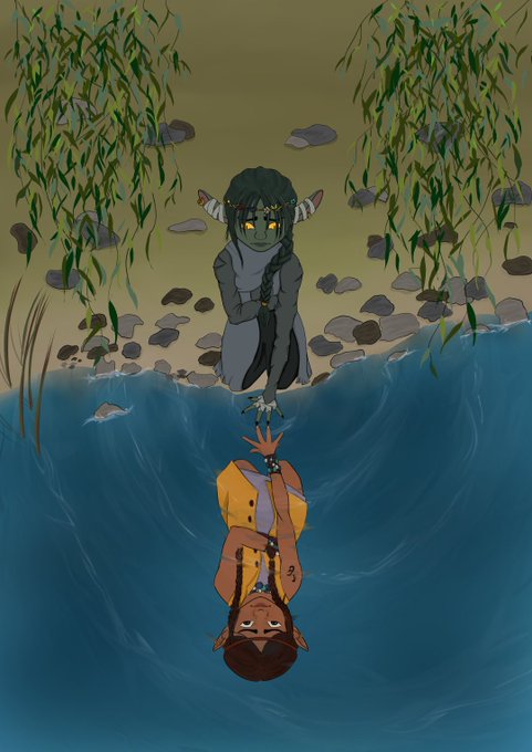 I think a lot of us can relate to Nott's struggle to find herself again, and I tried to capture that sadness and longing in this piece with her reaching for a reflection of Veth. #nottthebrave #vethbrenatto #mightynein #Criticalrole #criticalroleart #criticalrolefanart