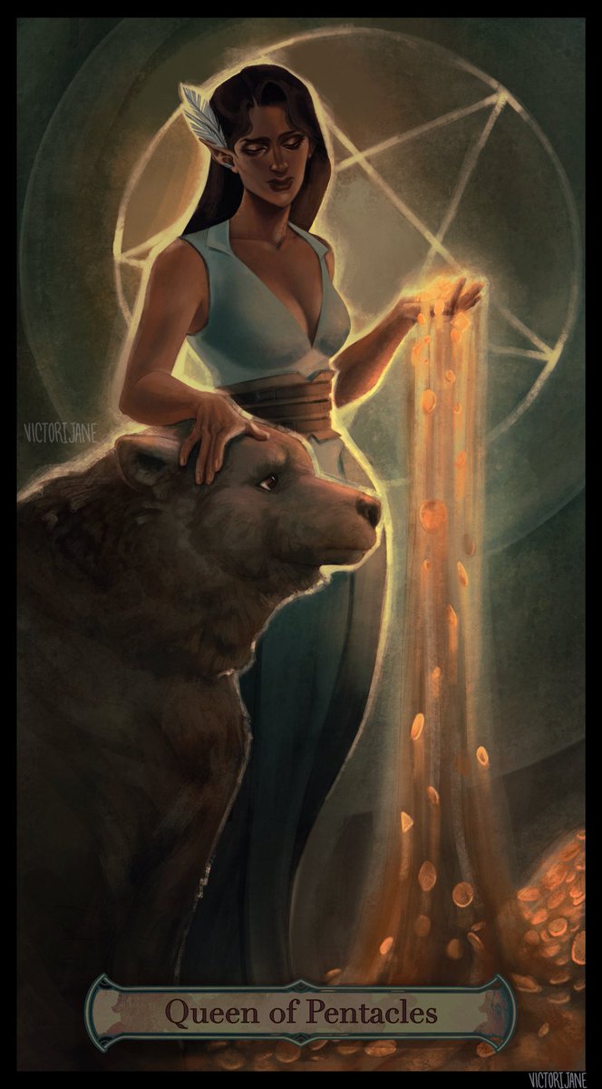 Queen of Pentacles: Practicality, creature comforts, financial security 👑 #VoxMachina #vexhalia #criticalrolefanart @CriticalRole