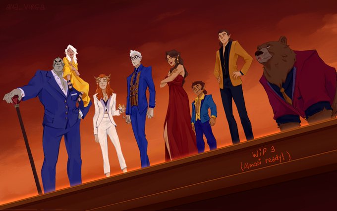 #TheLegendofVoxMachina is finally out and it's amazing! To celebrate, here is my final piece of Vox Gala (mixing up the cast outfits for the Variety photoshoot with a frame from the animation opening)! #criticalrole #criticalrolefanart #voxmachina #voxmachinafanart #dnd #LVM