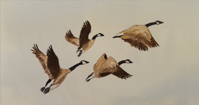 Lots of Canada Geese flying over the fields by me these last few mornings. Here's my watercolour of them #watercolourpainting #watercolour #watercolor #art #watercolourart #aquarelle #canadageese