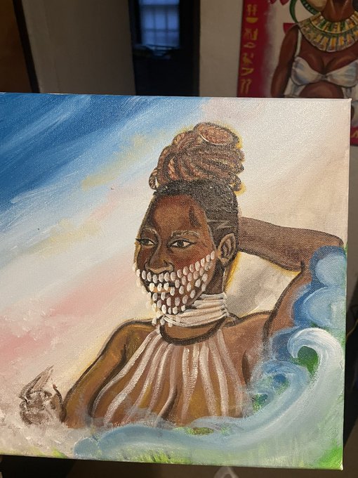 Another one in progress 12x12 original the live painting finished, that I did for the Enigma show... #artoftheday #blackartist #blackart #kingclaude #kansascity #culture #blackgoddesses #future #mermay #selflove #goals #color #love #blacklove #fatherhood #wife #fantasy