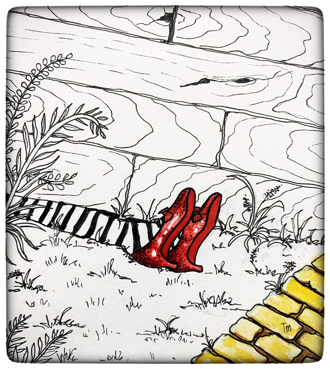 Inktober 2021 Day 25: Splat The iconic splat goes the witch under the house. One of my favourite movies and books as a kid, but its a little problematic for the present me. #inktober #inktober2021 #splat #wizardofoz #watercolourpainting #watercolorpainting #pensketch #arttherapy