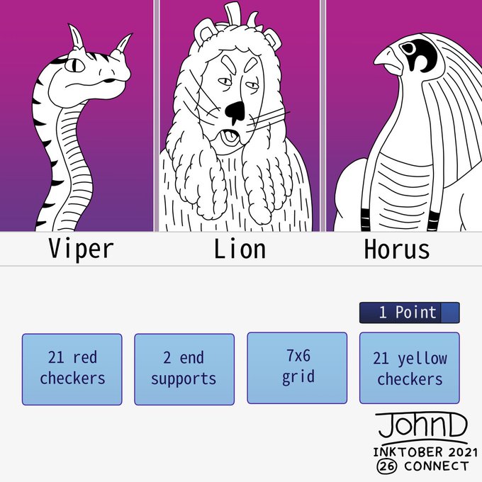 #inktober2021 - 26- Connect #connect #only #onlyconnect #bbc2 #victoriacorenmitchell @VictoriaCoren #hornedviper #lion #cowardlylion #wizardofoz #horus #eyeofhorus #hyroglyphics #egyptianhyroglyphics @Hasbro #connect4 #boardgames @inktober #inktober