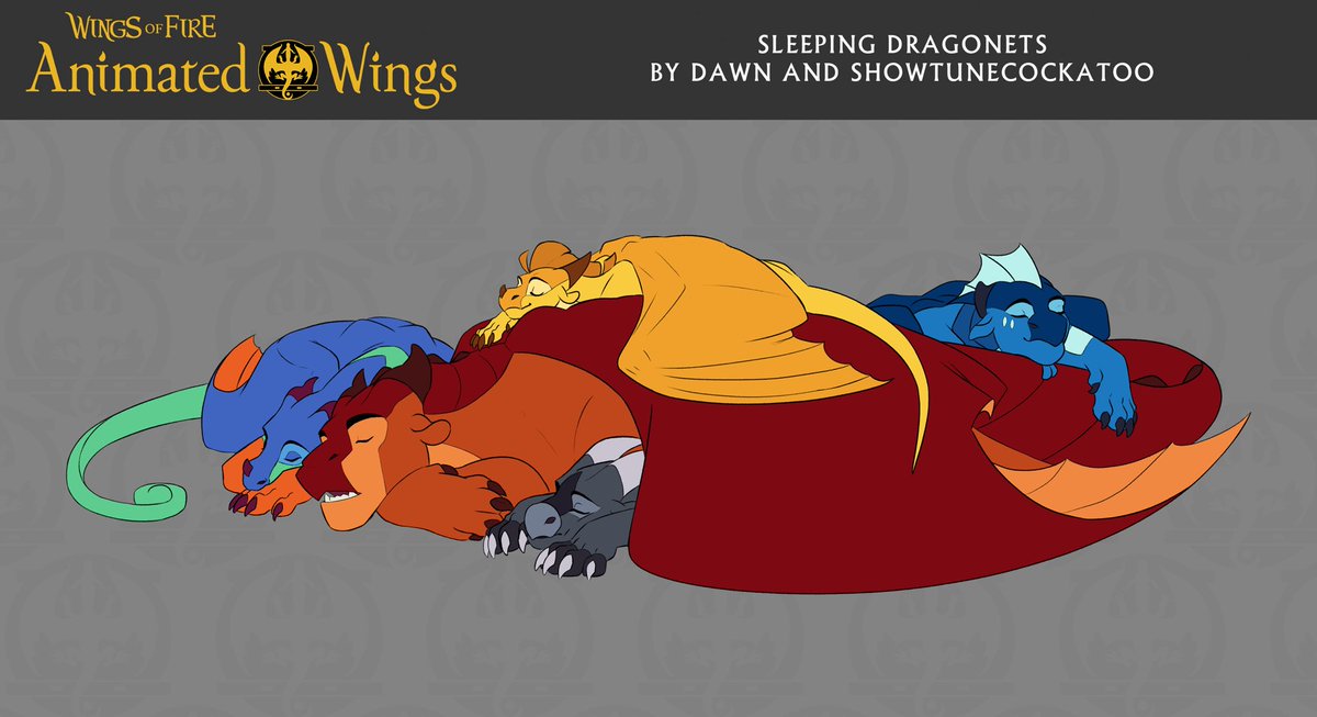 Sleeping Dragonets of Destiny by @DawnCatScribbles and @ShowtneCockatoo #animatedwings #wingsoffire #wof