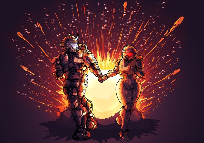 @issaspartan087 Commission of Tom and Lucy holding hands! #halo #xbox #HaloInfinite #gaming #digitalart #art #artistsontwitter #artist #drawing #draw #illustration #Photoshop #Commission