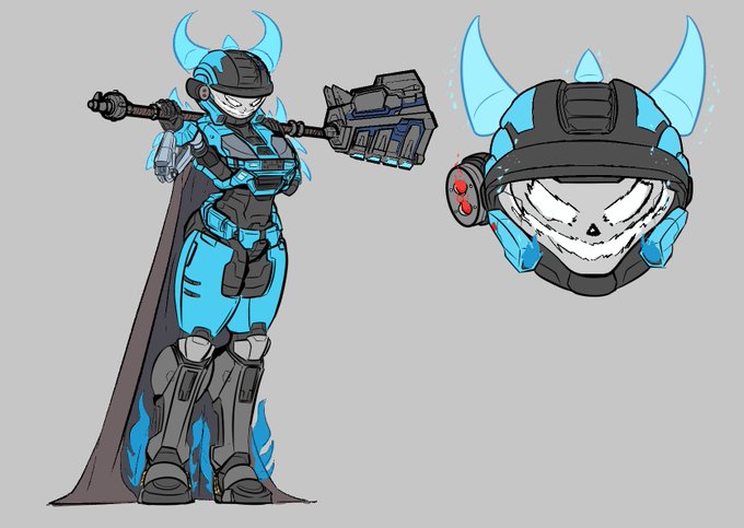 WIP of Kat as a Demon for Halloween! #halo #HaloInfinite #art #artistsontwitter #illustration #Photoshop #xbox #gaming #waifu #artwork