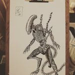 Happy #AlienDay! I keep meaning to do a redraw of this 2015 #Inktober, but then I get scared of how complicated #xenomorphs are and wimp out! 😅 #AlienDay2023 #Aliens #xenomorph