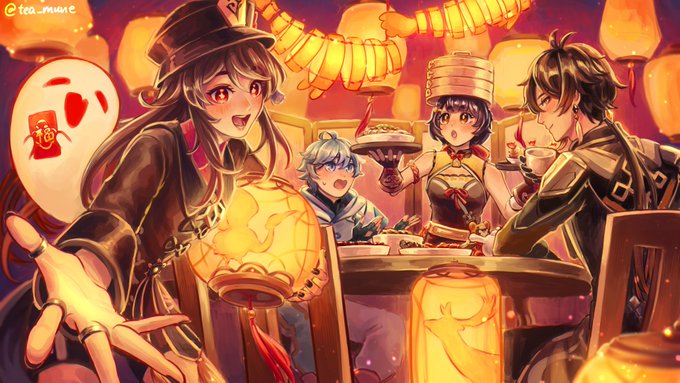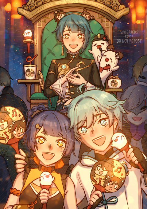 Xingqiu got the VVVVVVIP ticket at lantern rite and bought all of hutao and xinyan's merchs #xingqiu #xiangling #chongyun