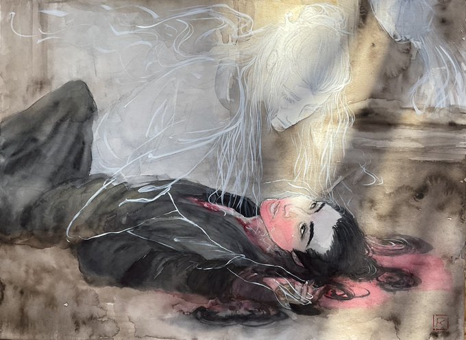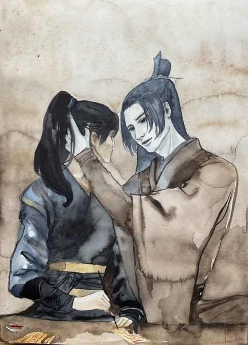 I wanted to do a reverse picture of that scene where XY bends down towards dead XXC face to “feel” his soul coming back. But with XXC ghost leaning over dying XY. #xueyang #XiaoXingChen #xiaoxue #yicityarc #MDZS #mdzsfanart #watercolor #ghost