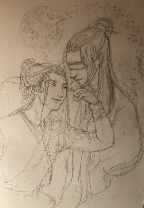 Some soft art nuveau style, guys? My mood swings from bones to stars and back. :) #yicityarc #mdzsfanart #wipdrawing #pencilsketch #xuexiao #xueyang #xiaoxingchen