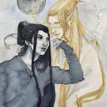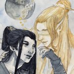 Some art nuveau style for Yi city. You can read it as XXC being the light of moon and stars, while XY is darkness of the night and space. #xiaoxingchen #xueyang #xuexiao #yicityarc #mdzsfanart #watercolorart