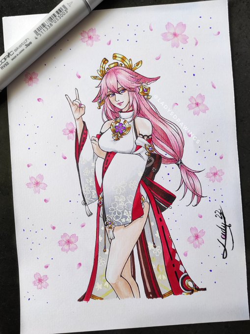 Yae Miko my beloved 🦊🌸 idk how twitter works . . . . #GenshinImpact #genshinimpactfanart #fanart #yaemiko #yaemikogenshinimpact