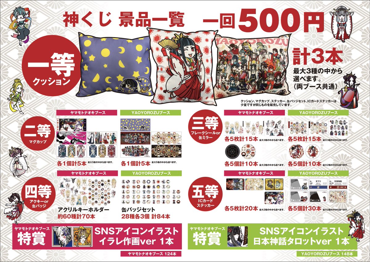 今回目玉の一つ! 神くじです! 1回500円です。 D32ヤマモトナオキブース B09.10YAOYOROZUブースで景品が違います! #デザフェス #デザインフェスタ48 #日本神話タロット #YAOYOROZU