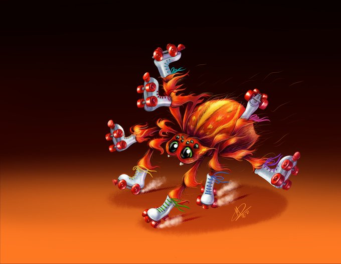 Rolling towards the weekend! Half way there! #FolloMe to see more artwork! #scbwi #kidlitart #ChildrensBooks #ArtistOnTwitter #illustrationart #DigitalArtist #yeg #HumpDay #spiders #rollerskates #artwork #canadianart #imagination #localbusiness #lookingtocommission