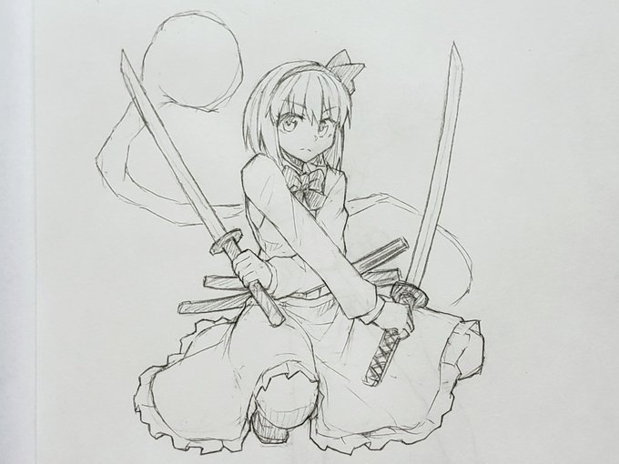 I asked a friend of mine (@speargsun) to give me a touhou character to draw and he recommended Youmu. #touhou #youmukonpaku #youmu #Procreate