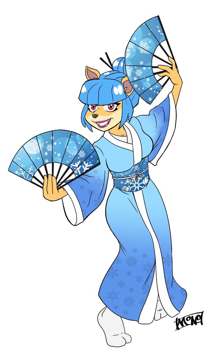INKtober - Day 7 - Fan #inktober2021 #inktober #FAN #CrashBandicoot #nitrosquad #MegumiBandicoot #yukata #kimonoちゃん