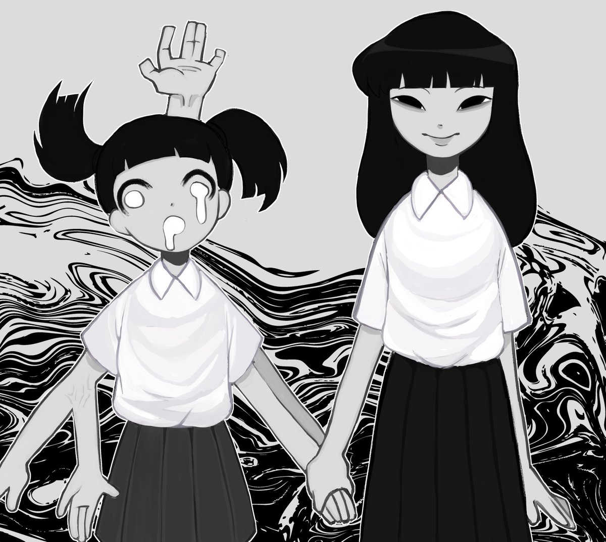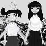 hmmm dunno if i prefer purble bg or white bg?. anyways radioactive monochromatic girls monoko and monoe #yumenikki