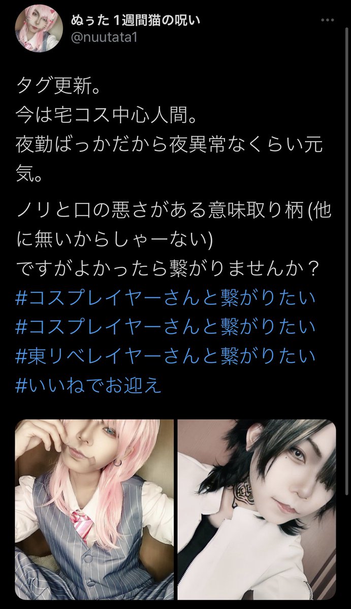 ⚠️注意⚠️ ぬぅたさん(@nuutata1)は、凛杏、はむ、鬱花紫、はてコス、幸(yuki)など、問題を起こしては名前を変えて転生している危険人物です。 詳細は私のRTをご覧下さい。 #コスプレイヤーさんと繫がりたい #コスプレイヤーと繋がりたい #東リべレイヤーさんと繋がりたい #いいねでお迎え