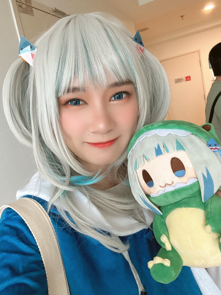 Hewoooop!!! Happy late weekendd 🫶🏻 here’s me trying to cosplay Gawr Gura 😋 . . #gawrgura #がうる・ぐら #gawrguracosplay #cosplay #hololiveCosplay