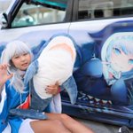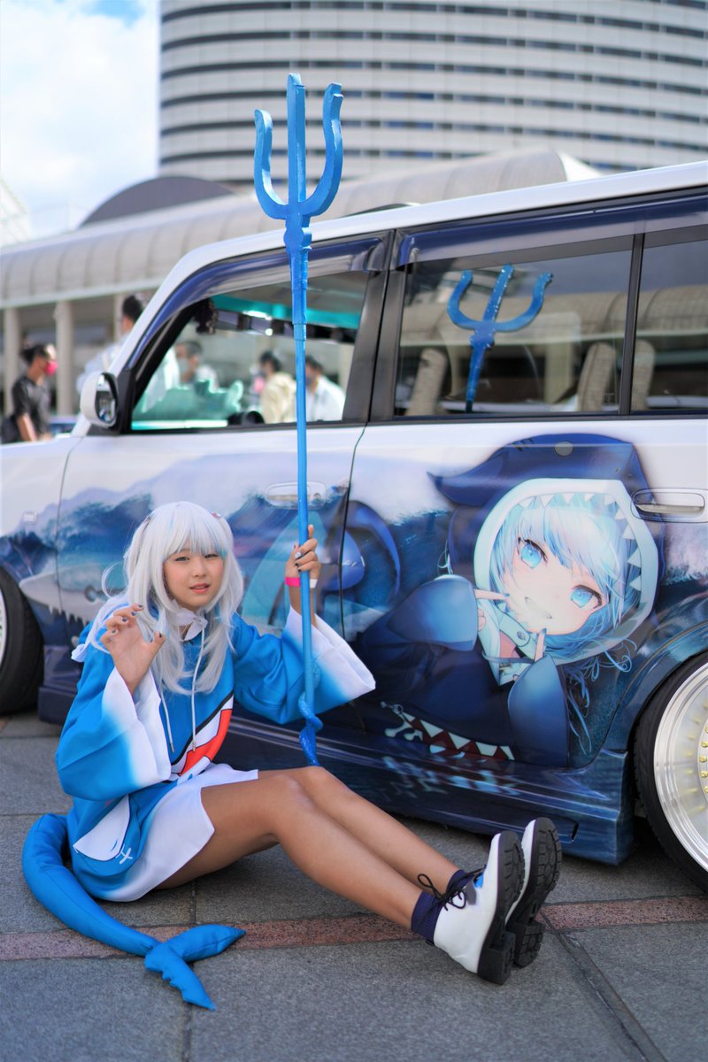 ポーアイコス、関西VtubrMT 主催、関係者の皆様、オーナー様 コスプレ、📷️マン様お疲れ様でした。この日は風があり寒かったですが、念願の🦈ちゃんで 痛車と撮影出来ましたm(_ _)m オーナー、こにさん@koni_same 📷️nekoさん@miria_811 #関西VtuberMT #がうる・ぐら