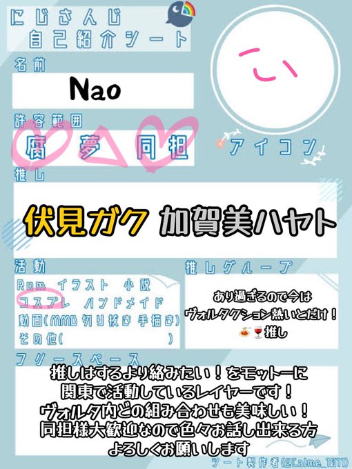 しがない重加工九州レイヤーですがレイヤー問わず人類と繋がりたいです…😭‼️ にじそも参加するので是非仲良くしてください👀🫶💙 RT中心に💗もお迎えに行きたいです🚗³₃ #にじさんじレイヤーさんと繋がりたい #にじさんじ好きと繋がりたい #にじさんじ好きな人と繋がりたい
