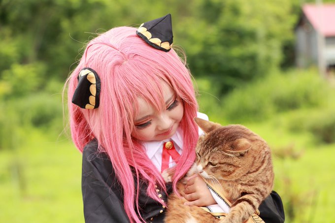 【コスプレ/Cosplay】 アーニャ猫飼いたい!となり、きっと父にダメだと言われるまでがワンセットで見える😂 アーニャ⇒SHyAN(8歳) 猫ちゃん⇒サンタのトコロのタビちゃん カメラ📸⇒@_shigeto_ さん #アーニャコスプレ #スパイファミリーコスプレ #ねこ