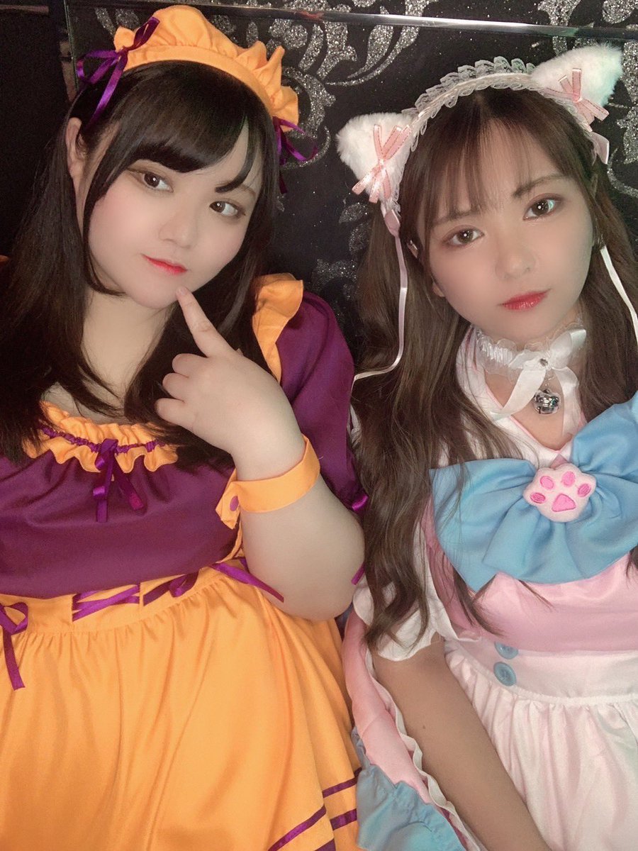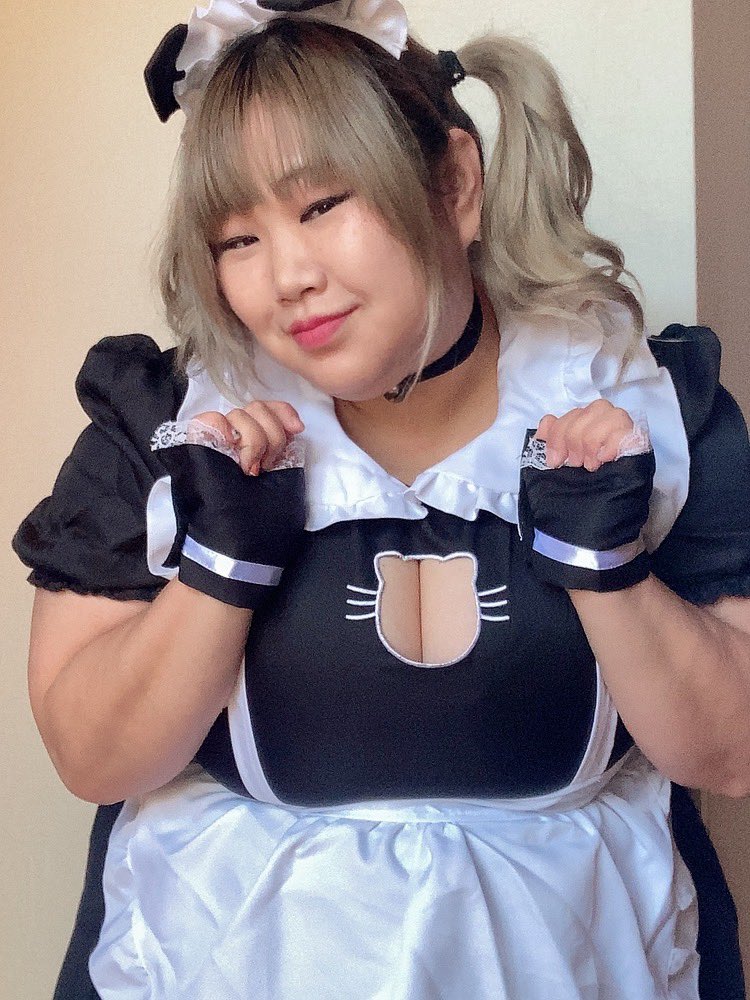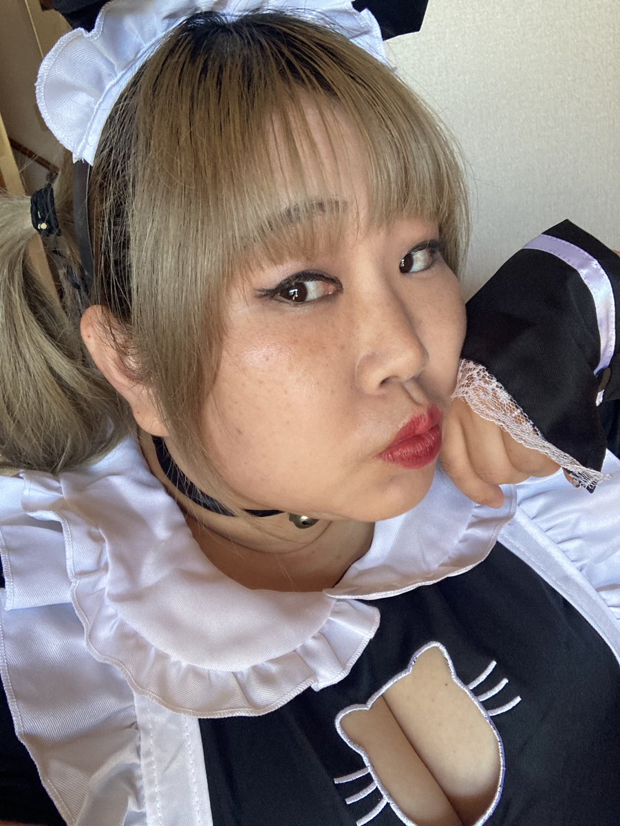 まだ早いけど、お速報的な! ふたつめのはメイドだけど、ひとつめのは伝わるでしょうか? 髪の色で出来そうな子…ってことで、随分と簡素にやってしまったけど💦 でも、メイクは頑張った〜!!💪 #ハロウィン #Halloween #Halloween2022 #ぽっちゃり #宅コス