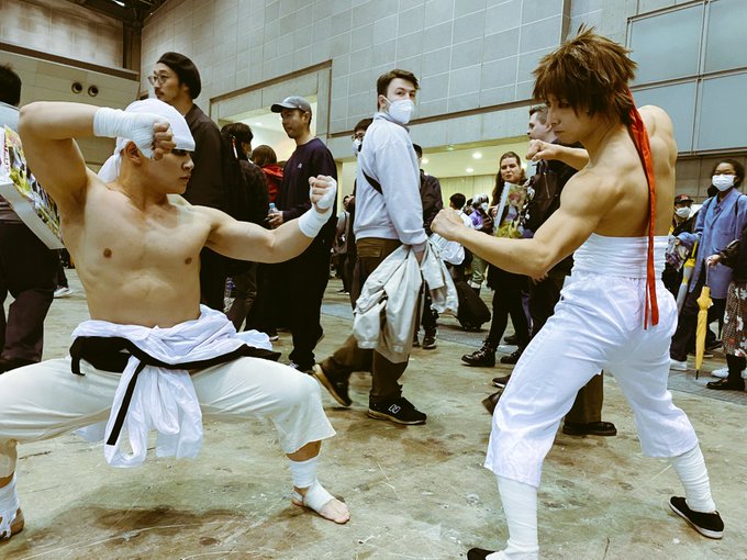 #るろうに剣心 併せ良かった…誰もが小さい頃傘を手にチャンバラごっこやって、自然と構えとか覚えますよね。 らんさんの剣心が身長含めてめちゃ剣心で😇せめて俺は実写版寄りになれたかな? 次に併せをやる時は、身長を活かして四乃森蒼紫をやりたいと存じます☺️ #AJコスプレ #アニメジャパン2023