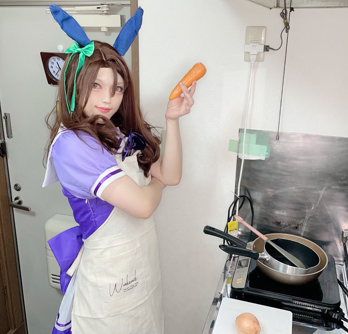 【 #cosplay 】 「おーっほっほっほ!どう?このキングにかかれば、にんじんハンバーグだってこの通りよ!」 「え?悲鳴が聞こえた?……き、気のせいよ!!」 #クッキングヘイロー #ウマ娘になってしまいました