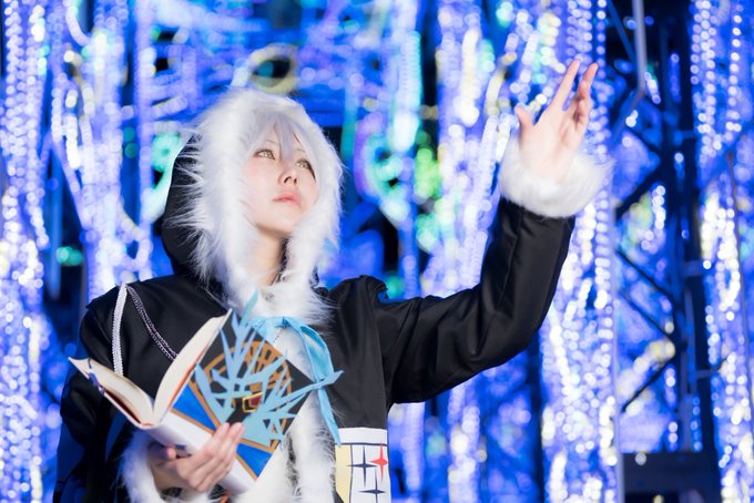 #コンパスエンジョイ部 ①ソーンユーリエフ ② 儚い感じの表情を意識して撮影して頂きました!手に持っている本は造形未知識ながら氷っぽい感じで作りました!大好きな1枚なのでたくさんの方に見ていただけると嬉しいです!!!