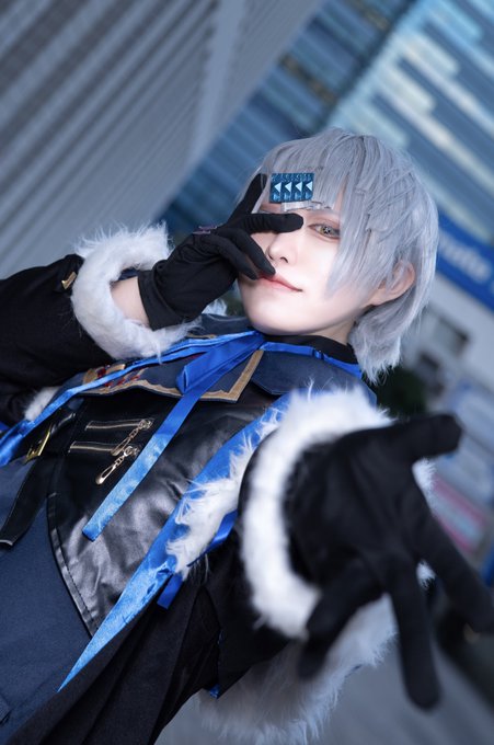 #コンパスエンジョイ部 ①アダム=ユーリエフ ❄️ ②カメラマンさんとお友達に手伝って貰いながら、コートのひらみを出して最高の1枚が撮れました…! クールだけど怖くない、優しさのある表情やメイクを意識しています🙌🏻 特徴的な髪型を再現するために、ウィッグにしっかり段をいれました( ¨̮ )