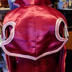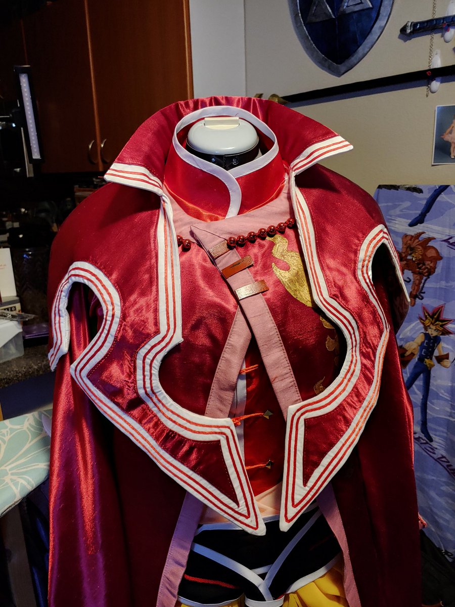 Tunic remade using bamboo rayon. No more dying from heat at a con for me. The old one had fit issues that were bothering me, so I took the chance to make the second one right and comfy. Only 2 more pieces and he's done! #ThunderboltFantasy #サンファン #cosplay