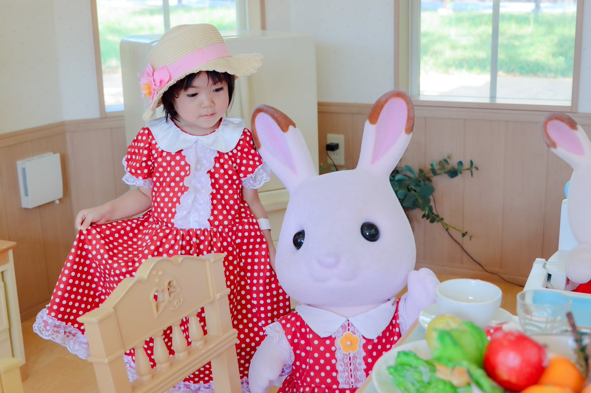 レタッチ終わったー!シルバニアファミリーな娘を見てほしい。衣装は私の人生初のハンドメイドワンピースだよ🐰縫い目を拡大してはいけない…😂 #シルバニアファミリー #シルバニア #コスプレ #ポートレート #photo #写真好きな人と繋がりたい #ハーベストの丘