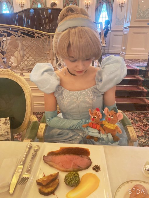 🏰✨ ドリミ中だったから奇跡的に人が居なかったの😭 念願の構図✨ ありがとうございました😭 3枚重ねのスカートの素材感まで写ってて嬉しい。。 📸@tatsuyuki_82 #ナイトフォールグロウ #シンデレラ #Dハロ仮装2022